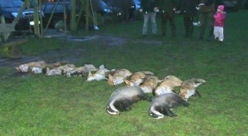 Am Ende des Suchentages lagen gesamt 11 Füchse und 2 Dachse auf der Stecke.